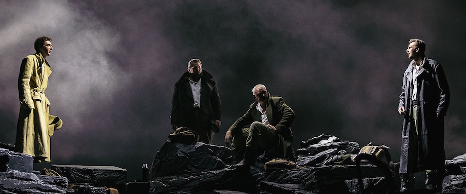 Когда картина Коула поднимается к колосникам, за ней появляется еще одно игровое пространство – темное, бездонное, затянутое туманом, в нем различима лишь груда серых камней. Это пространство пьесы Шеррифа – лимб, в котором застряла пехотная рота британской армии. На камнях – офицеры во главе с капитаном Стенхоупом (в исполнении Максима Керина он напоминает героя прозы Хемингуэя), люди буквально застыли в ожидании. Офицеры обсуждают мирные темы: какие блюда будут поданы на обед, почему чай пахнет луком, как вместо консервированных ананасов на походный стол попали консервированные абрикосы. Почему они об этом говорят? А как ещё им зацепиться за жизнь, когда вокруг либо смерть, либо её предчувствие, которое только усиливается с появлением Рали (органично-благородный Максим Заболотний).
