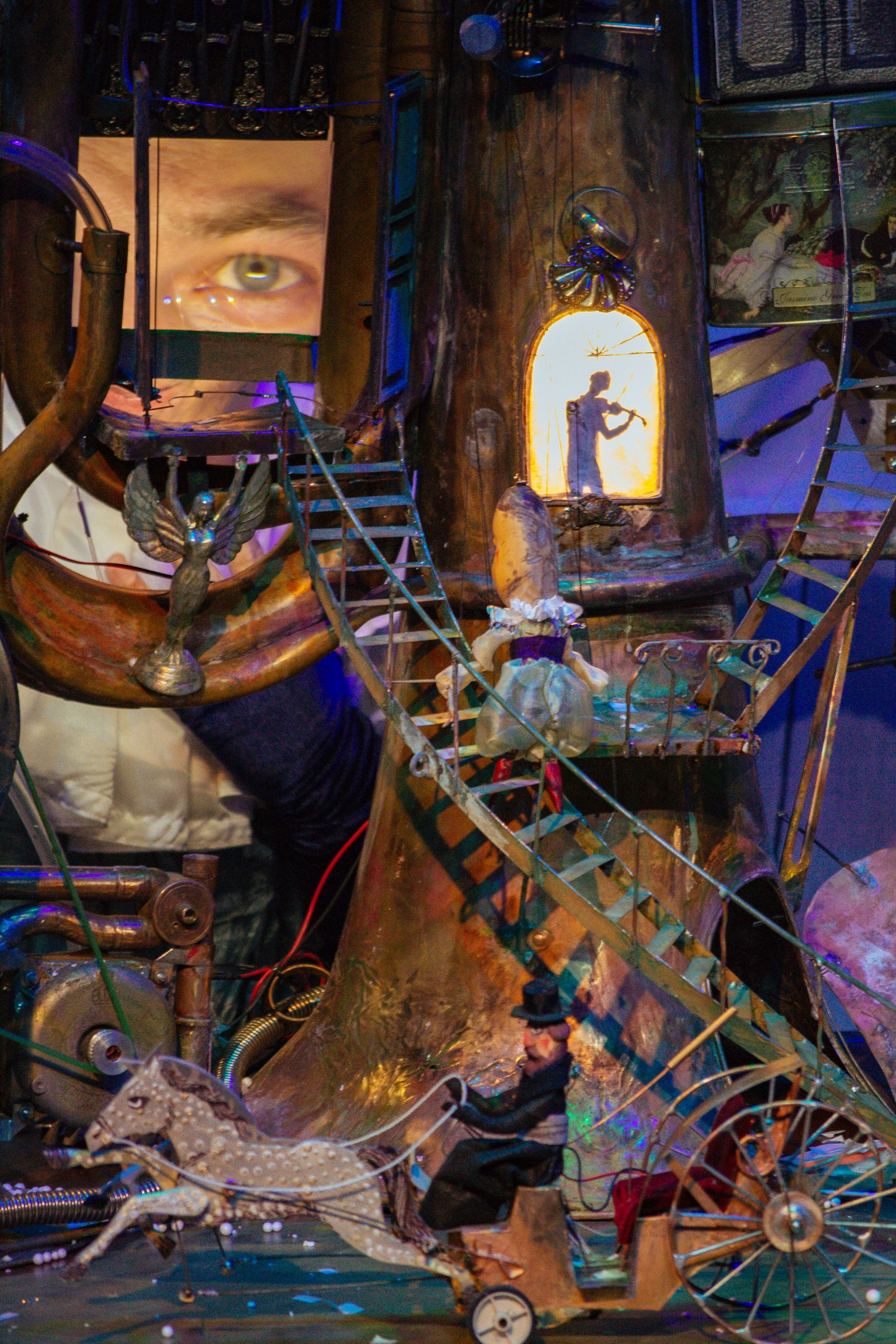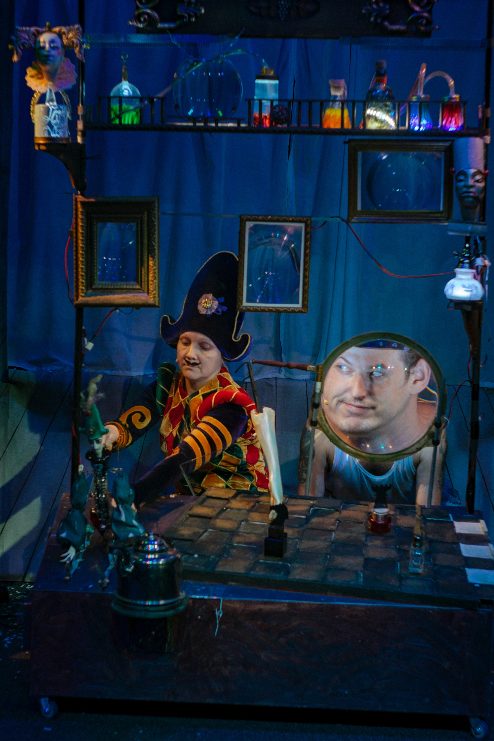 Как бы то ни было, сегодня и завтра челябинские зрители увидят премьеру «Балаганчика», непосредственная работа над которой шла около года. Первые показы совпадают с юбилейной датой: вчера, 28 ноября, исполнилось 145 лет со дня рождения Александра Блока. Сам режиссёр на юбилей едва ли ориентировался: по словам Плотникова, ему, «в общем-то, и поэзия чужда, и Блок как таковой». Зато парадоксальное внутреннее родство с поэтом мастер ощутил, случайно оказавшись во время работы над премьерой в петербургском музее-квартире Блока: «Я увидел там кораблик с паровым двигателем, спаянный из металла, подозреваю, что самим Блоком, и подумал, что, если бы он занимался этим, то бы мне был больше симпатичен… и ему самому легче бы жилось». Отчасти именно увиденный кораблик и подтвердил для Плотникова необходимость использования в спектакле его фирменных «механизмоидов» — уникальных кукол и конструкций, которые он создаёт и даже изобретает для многих своих постановок. Таких механизмоидов в спектакле будет четыре. Впрочем, сам режиссёр поясняет: «Когда я в своём спектакле соединяю механическое и не механическое, то на контрасте и возникает вспышка, взрыв. Механизмоиды для меня не самоцель — это краска, которая позволяет создать живой спектакль».