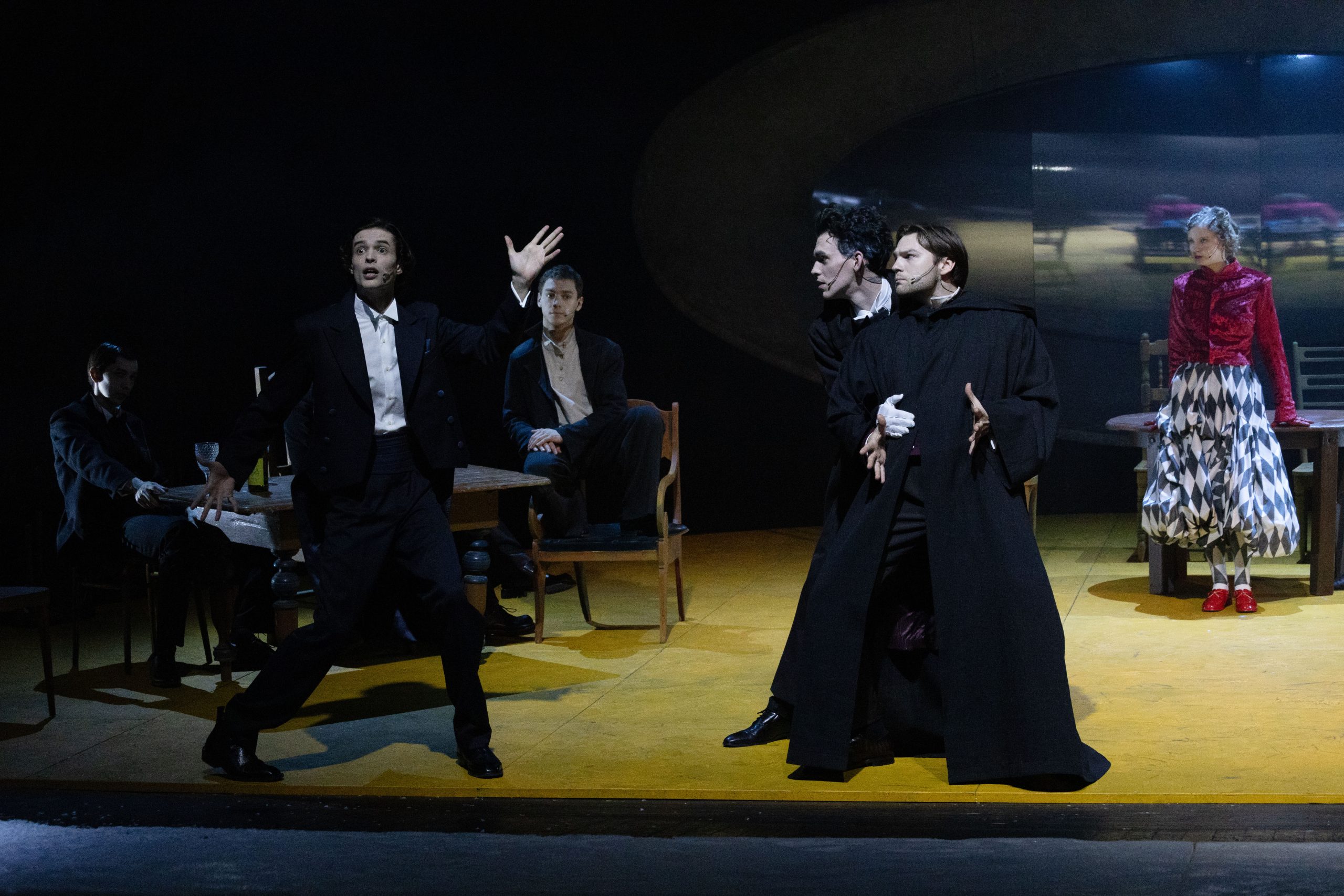 В спектакле заняты артисты: Илья Винс (Борис Пронин), Игнат Елатомцев (Велимир Хлебников), Соня Ардова (Анна Ахматова), Сергей Занемонец (Всеволод Мейерхольд), Эдуард Володин (Николай Гумилёв), Данила Казаков (Алексей Толстой), Иван Петросян (Владимир Маяковский), Александра Милёшина (Ольга Судейкина), Хасбулат Татаров (Казимир Малевич), Иван Новиков (Игорь Северянин), Ульяна Михайлова (Софья Шамардина).