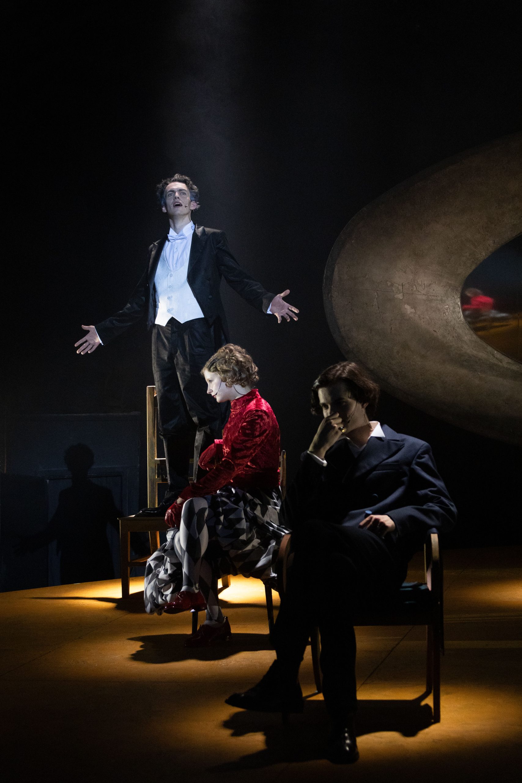 «Если бы у меня была машина времени, я бы хотела переместиться в Петербург, в один из вечеров 1912 или 1913 года, в подвал „Бродячая собака”, — говорит Лера Суркова. — Я бы просидела там до утра, чтобы посмотреть, как те, кто для нас сегодня — имена в учебниках, хрестоматийные фигуры, бронзовые изваяния, — дурачатся, влюбляются, ссорятся, читают друг другу только что написанные стихи, спорят, танцуют до упаду, а под утро, усталые, расходятся по домам. Здорово было бы увидеть их живыми. Но машины времени у нас нет. Поэтому мы собрали по крупицам всё, что узнали об этом месте. Читали дневники, письма, мемуары, разглядывали фотографии. Мы пытались себе представить жизнь кабаре „Бродячая собака” — жизнь накануне исторического разлома, который вот-вот изменит судьбы его обитателей навсегда. Наш спектакль не реконструкция. Не документальное расследование. Не попытка восстановить историческую правду. Это впечатление. Это легенды».