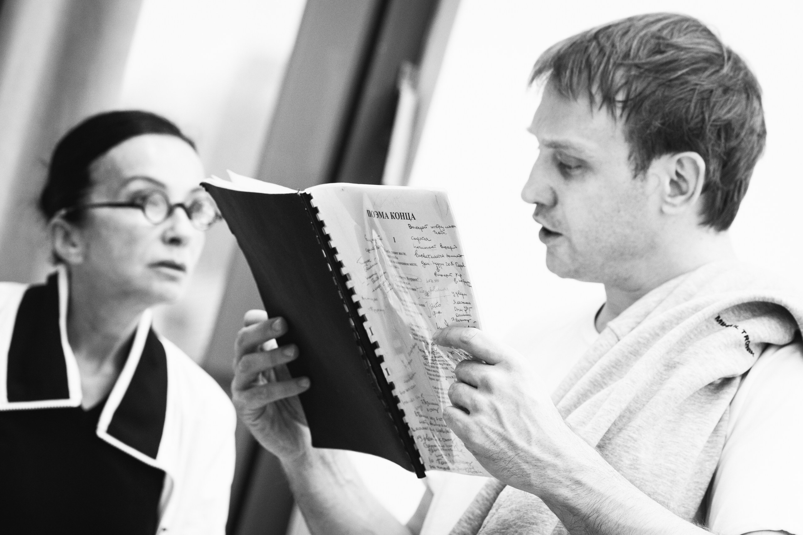 О работе под названием «Двое», которую увидят и услышат зрители нынешнего Крещенского фестиваля, композитор рассказывает так: «Обратиться к тексту Цветаевой предложила Алла Сигалова, и речь сразу шла о “Поэме конца”. Конец отношений для Цветаевой — это конец света, и мне нравится это космогоническое измерение её поэзии. Для меня её текст — ожидание звезды Меланхолии, которая уничтожит нашу планету, пребывание в Апокалипсисе».