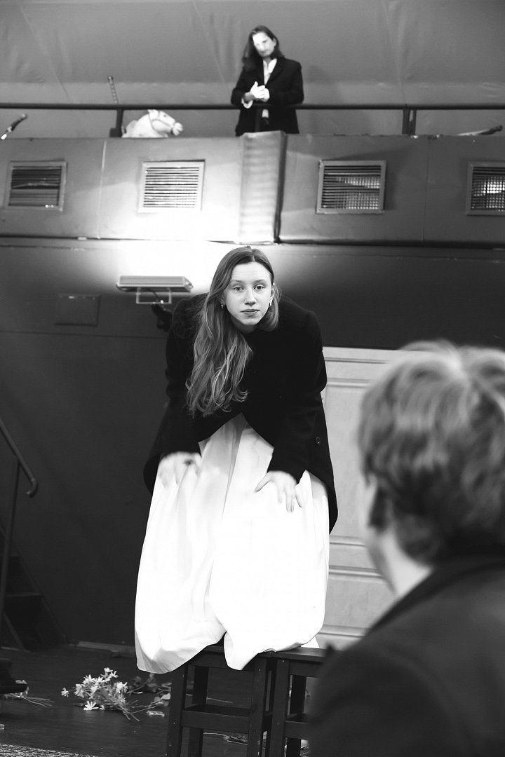 Премьерный спектакль станет второй режиссёрской работой актёра Сергея Волкова. Первую он осуществил в 2013 году, ещё будучи студентом СПбГАТИ: камерная двухчасовая постановка «Преступление и наказание» создавалась так называемой Студией Театра имени Ленсовета — курсом Анны Алексахиной, — и в статусе студийной впоследствии вошла в репертуар театра. В спектакле, художественным руководителем которого был учитель Волкова Юрий Бутусов, молодой режиссёр соединял текст романа Достоевского с историей террориста Брейвика и сам играл главную роль. Нынешняя премьера также будет спектаклем малой формы и даже будет иметь ту же продолжительность, что и петербургская студенческая работа Волкова, который вновь примет участие в постановке и как актёр.
