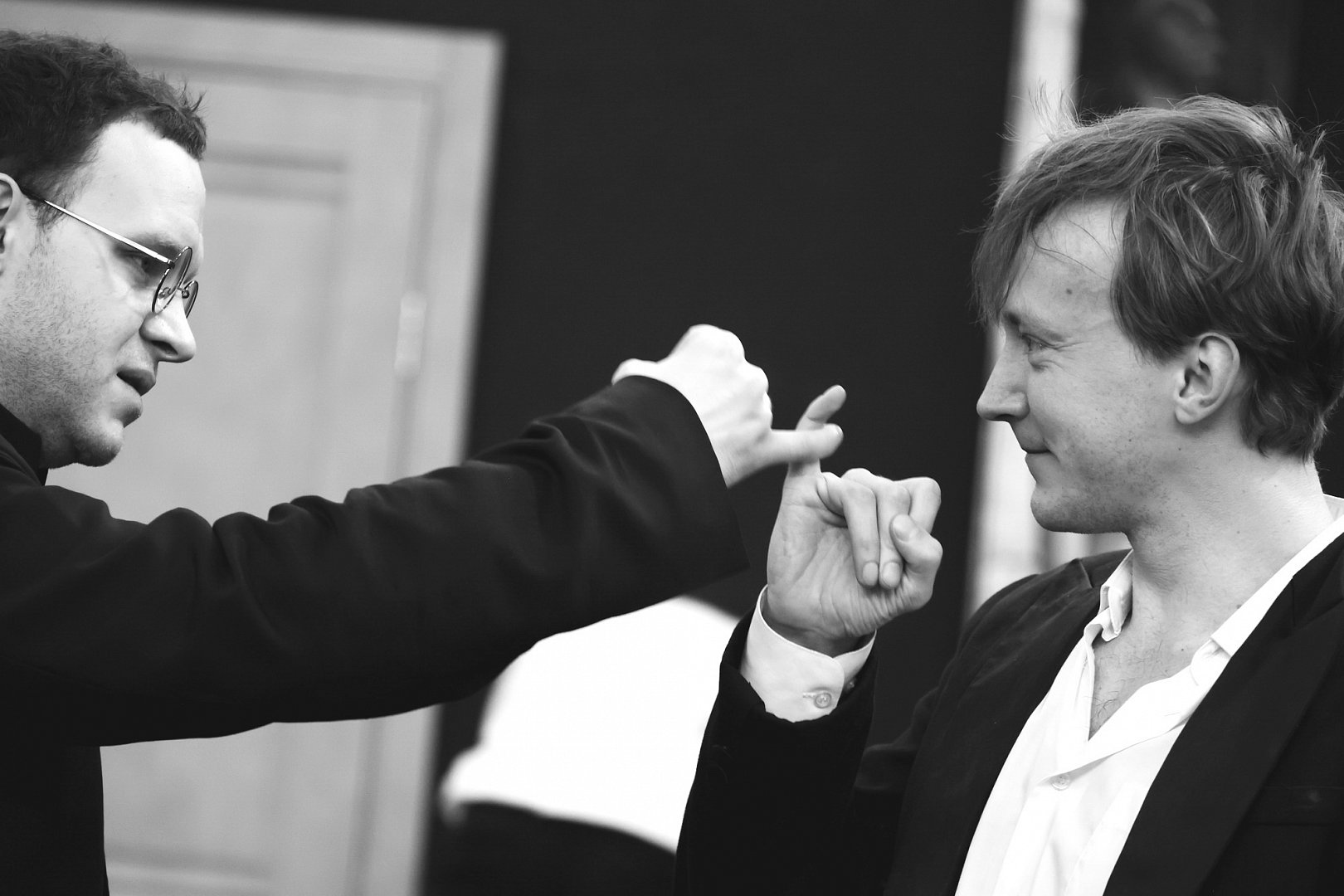 Очевидно, что не меньше, чем с давним режиссёрским дебютом Волкова, спектакль связан с не завершённой работой Юрия Бутусова. Мастер репетировал «Идиота» в Вахтанговском театре, но намеченная на январь 2023 года премьера так и не состоялась: осенью 2022-го Бутусов уехал из России и покинул пост главного режиссёра Вахтанговского, который занимал с 2018 года. Интересно, что сообщение об увольнении было опубликовано 15 ноября: нынешняя премьера «Идиотов» пройдёт спустя ровно три года после этого события.