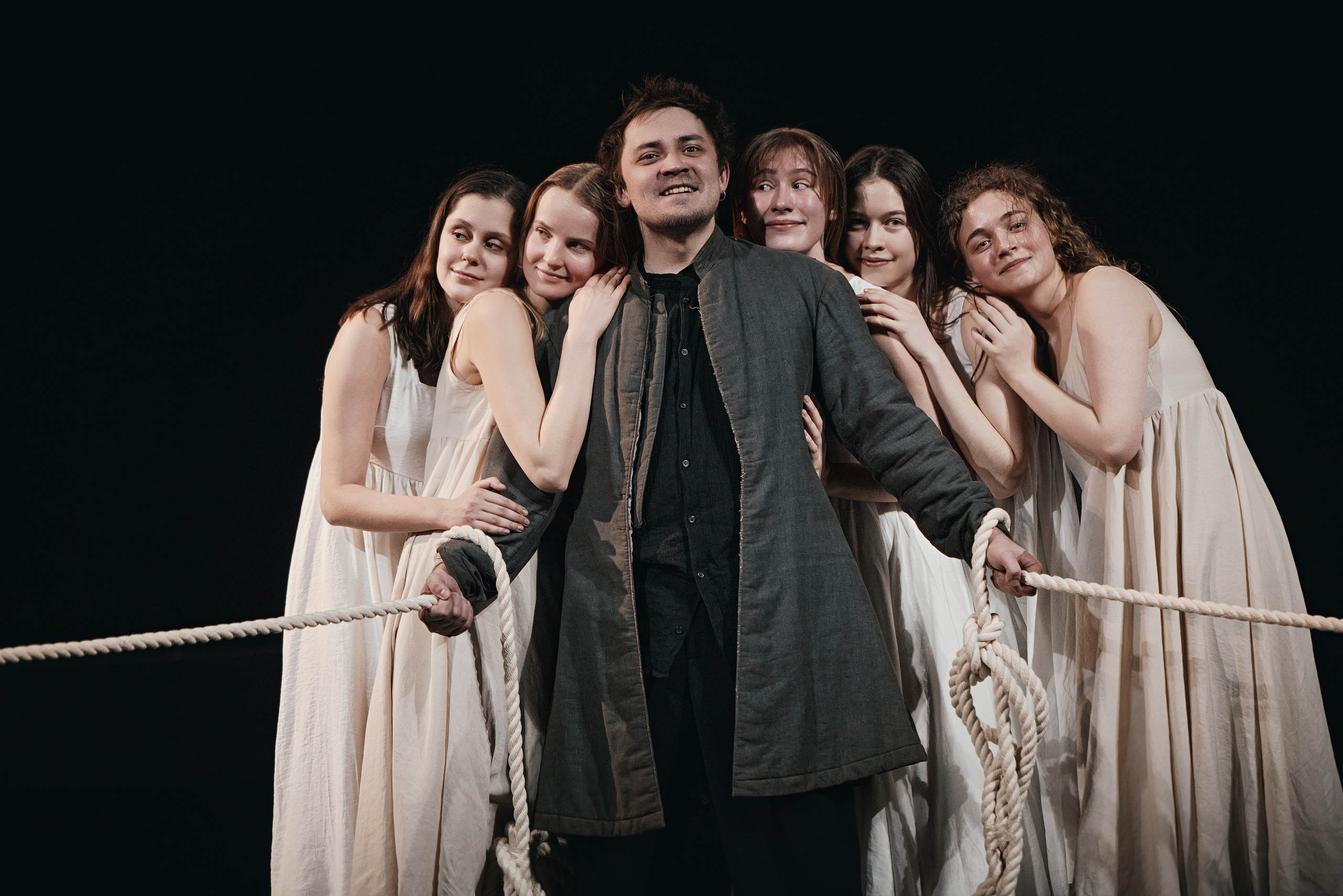 Молодость участников постановки (большинство из них — недавние студенты, ученики Евгения Писарева или Юрия Бутусова) для Олега Долина была во многом принципиальным фактором. В своей «Капитанской дочке» он делает молодого человека Петрушу Гринёва связующим звеном между всеми элементами истории: хотя он активный участник действия, а не повествователь, но, как сказано в анонсе, «зрители увидят историю его глазами». Эта идея присутствовала в другой «Капитанской дочке», созданной Долиным: за несколько лет до нынешней премьеры он поставил этот текст с совсем юными артистами — учениками московской школы «Класс-Центр». Из той же работы перешёл в премьерную версию образ музы-спутницы, которую будет играть выпускница мастерской Юрия Бутусова в ГИТИСе Евгения Леонова. Впрочем, «Терпсихора, муза танца и эпической поэзии» — отнюдь не самая оригинальная строчка в списке действующих лиц. Вполне традиционно для себя Олег Долин сочиняет «театральную фантазию» на основе классического первоисточника, где важную роль играет ансамбль, а все условные роли его участников перечисляются в программке. Так, среди героев премьерной «Капитанской дочки» есть «пёс Гринёва», «чайки на Английской набережной» и «высшее общество, присутствующее на казни Пугачёва» (но при этом нет, например, Екатерины II — весьма важной героини пушкинской повести).