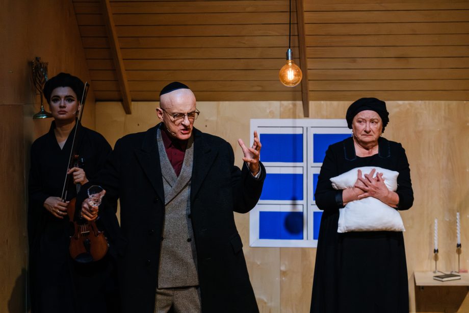 Спектакль мыслится как монументальная фреска, которая представит многообразие судеб. На это намекает уже его начало – когда на сцену поднимаются люди из разных уголков зрительного зала, рассказывая «свои» истории. Другие герои появляются из сценического люка. Все это создает картину бесконечного «наводнения» историями. Что интересно, образ подобного «наводнения» был использован, например, Павлом Пассини в спектакле «Укрытие» 2014 года – проекте, изначально ориентированном на исследовании одной-единственной судьбы, но открывшемся на множество других историй. Однако тот проект как раз проблематизировал и ту «запруду», которая существовала, прежде, чем «наводнение» историями могло произойти. Здесь, в сегодняшней «Квартирантке», ни о чем таком речь не идет. Как если бы уже не существовало никакого барьера, а в любой момент рядом с нами мог бы оказаться человек, готовый аутентично представить историю жертвы Холокоста. Может потому, что таких людей сейчас, в 2025 году, уже практически нет? И поэтому этих людей можно репрезентировать без проблем?