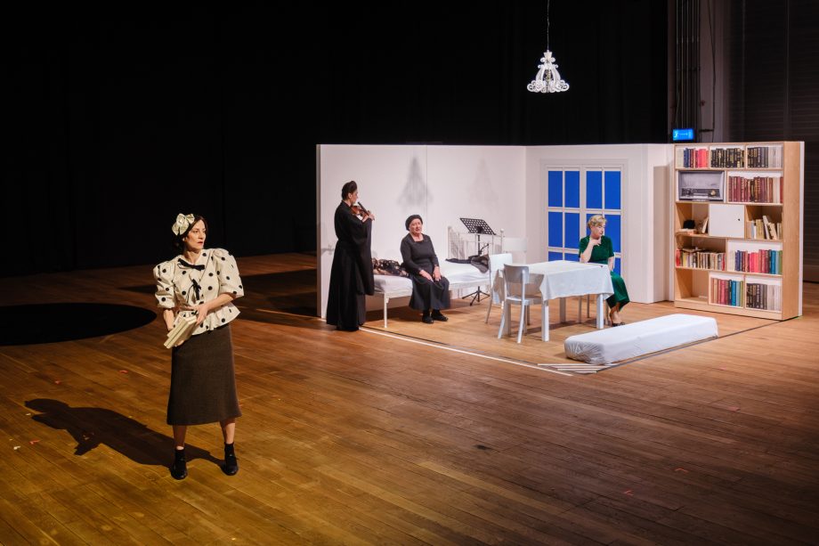 Мне кажется, создатели спектакля приняли позицию, иронично озвученную к концу книги «психологом», описывающим девиктимизационную терапию: согласно которой, повзрослевшая девочка теперь – наконец! – дослушает мать до конца, узнает, «как выглядела улица на другой день, когда уже не было на ней ни отца, ни людей, тащивших чемоданы и белье, ни дедушки с его абсурдным самоваром – только пятна крови на тротуаре, а в воздухе перья из вчерашних подушек». Она переживет «все, чего не хотела тогда до конца пережить, поскольку грусть вела к прострации и лишала сил, необходимых для выживания».