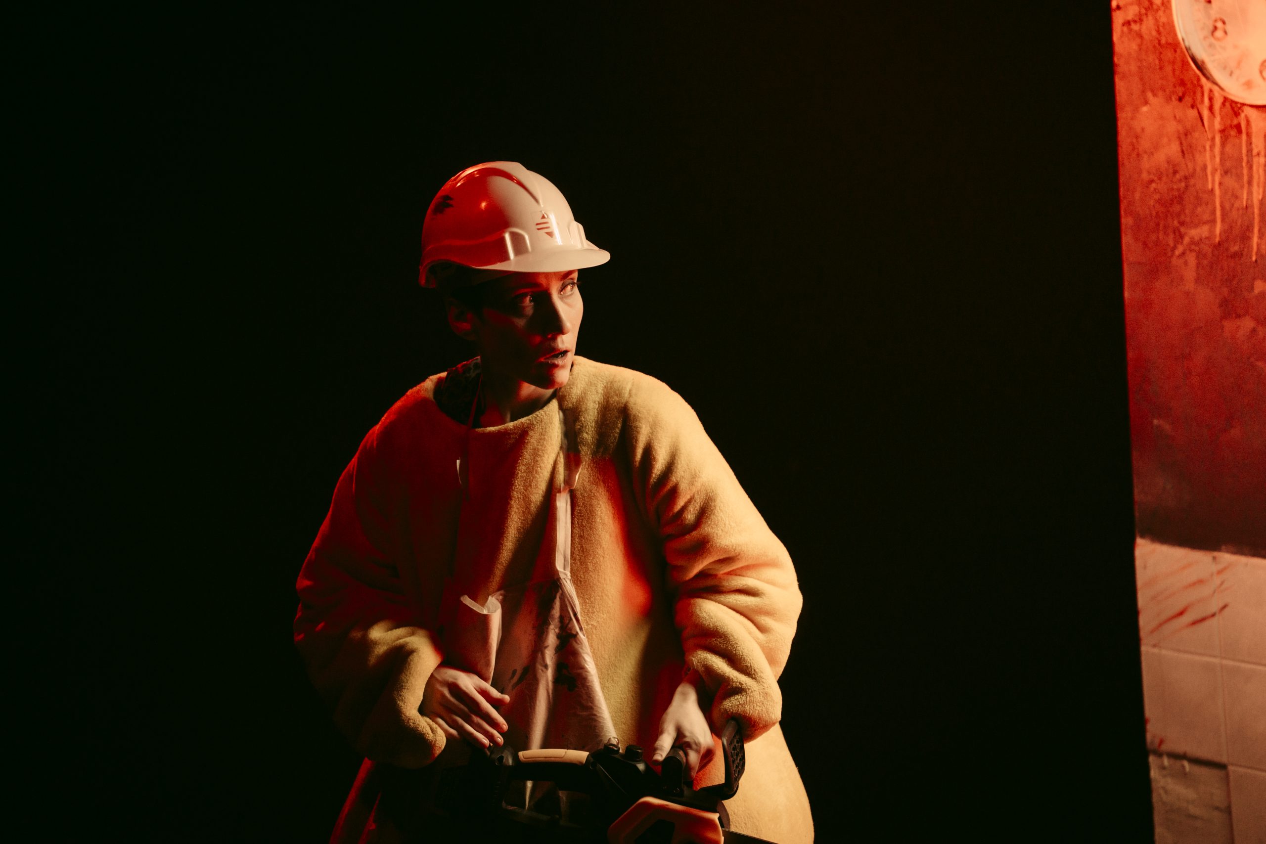Если говорить о структуре спектакля, то в ней угадывается квест именно для главных героев: хотя они не покидают сцену от начала до конца действия, и Затворник, и Шестипалый проходят большой путь в поисках свободы и спасения. Их путешествие имеет очень понятную цель: уйти от опасности, спастись, выбраться на свободу. В первую очередь, это притча о вечном поиске правды и покоя. Потому и герои получаются у нас „вечными“. С их архетипами мы как будто уже знакомы: беспокойный пытливый ум, стремящийся вперёд, рискующий потерять себя без верного и несколько наивного друга рядом. Такие люди встречаются всегда — и, на наш взгляд, эти типы вполне узнаваемы — даже если это цыплята. Что касается фигуративности, то в спектакле хватает работы с предметами, хотя мир птицефабрики получился достаточно лаконичным. Пожалуй, главные предметы в этом спектакле — ярко-жёлтые, объёмные костюмы цыплят, которые дают актрисам особую пластику, оттеняют страшное в истории Пелевина; они помогают нам существовать на грани смешного и бесконечно печального. Кроме того, в истории появляется ещё один герой, которого Затворник и Шестипалый не могут бросить одного и берут с собой в путешествие. Да, этот герой молчалив — но это не делает его менее впечатляющим».