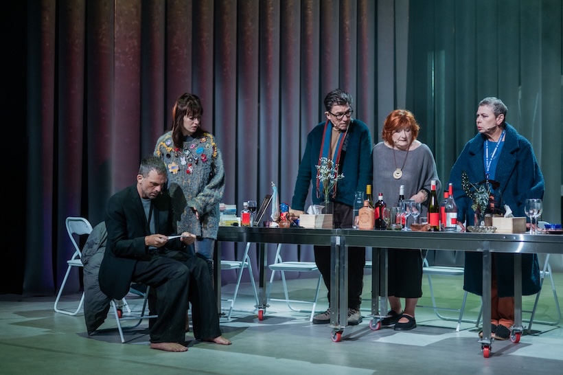Спектакль фиксирует нашу беспомощность перед настоящей трагедией. Близкие, безусловно сочувствующие, не находят и не ищут слов выразить соболезнование. Будет всего лишь несколько жестов, несколько объятий, по которым мы удостоверимся, что мы все правильно поняли. Но не слов. Именно этим маркирует Минковская масштаб трагедии этих двоих. А также – пропастью, которая пролегла между ними и всеми остальными. А остальные пытаются так или иначе преодолеть, так или иначе справиться, так или иначе поддержать друг друга перед лицом смерти, которую не понимают и которую невозможно будет понять. И бесконечно ссорятся друг с другом по поводу тактичности/нетактичности друг друга. Лезут в предыстории своих взаимоотношений, дают хлесткие характеристики семейному укладу, друг друга не жалея. По сути, слова и действия каждого так же спазматичны, как и молчание отца умершей, то и дело захлебывающееся в мелких воспоминаниях, заставляющих заново и заново осознавать свое горе. От которого, он, впрочем, не убегает. Знает, что не может убежать. Спазмы же остальных, пожалуй, вызваны если не побегом, то бессильной попыткой умолчать, не называть, не бередить, продолжать жить. Исключение составляет авторитарный отец (точнее, дед) семейства (Мирослав Зброевич). Уже давно живущий отдельно, он возвращается в этот дом, в эту семью, чтобы руководить и ставить на место. Уже никто, кажется, по этому поводу не переживает, дело и так закончилось разводом, однако по залу прокатывается смешок узнавания, когда папа, которого великовозрастные и давно ставшие самостоятельными дети давно не видели, садясь в машину, тотчас же начинает рутинно всех строить, брюзжать и объяснять сыну–водителю, как ехать. Как будто вчера расстались. В гостях у своей бывшей жены он не раз скажет, что это его дом, хоть и не будет возражать на усталые замечания детей, что это давно не так. Наконец, потребует включить матч, а на намеки, что это не уместно, будет лезть бутылку, чтобы ему объяснили, что такого. И не сможет остановиться, когда ему придет в голову подсчитать, сколько пассажиров вовремя не приехало на место следования, потому что кто-то – а именно, его внучка – поступил так безответственно…