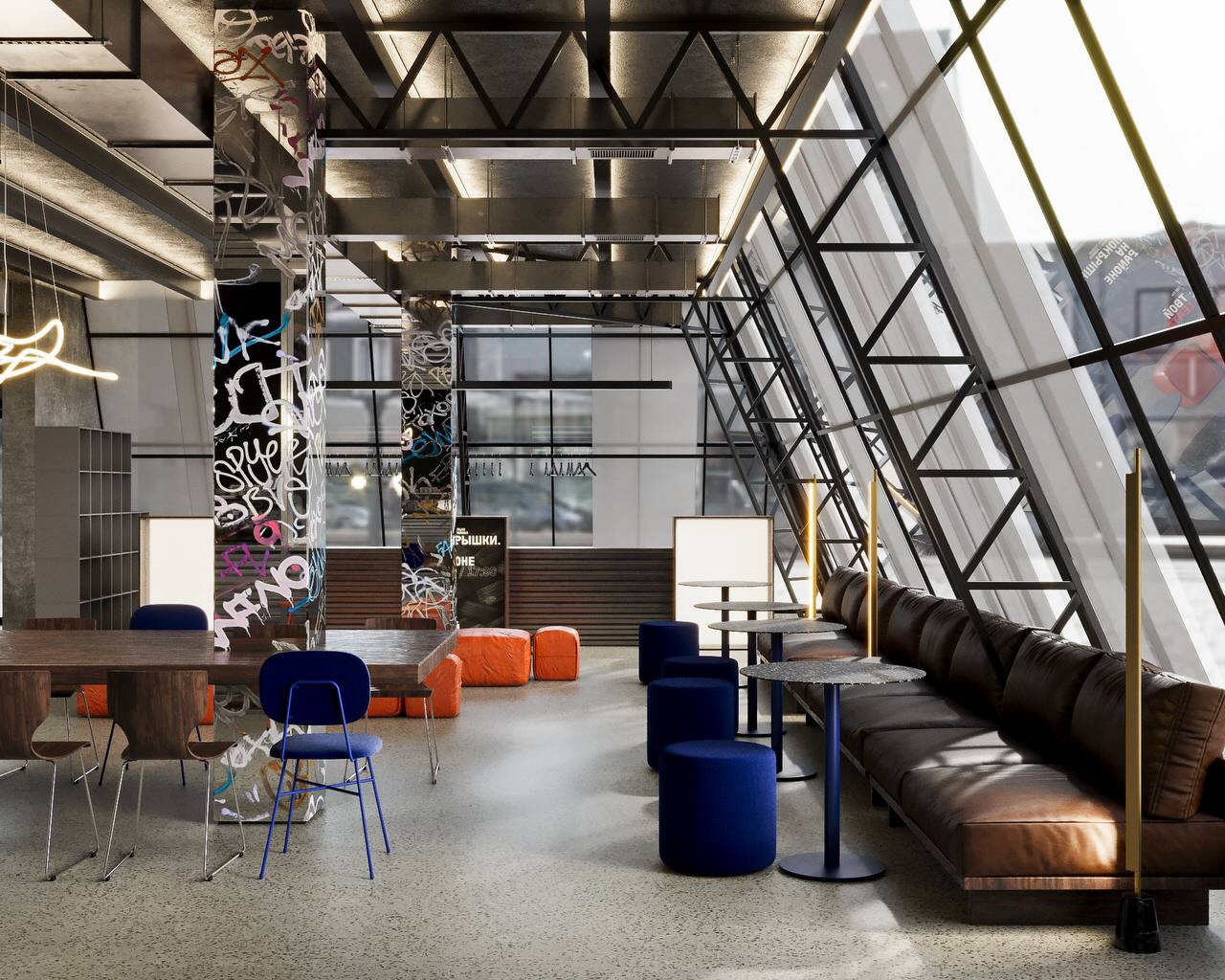 При этом одной из особенностей новой площадки станет её открытость — по замыслу создателей, она станет культурным пространством, куда можно будет прийти не только на спектакли. Дизайнер Дарья Герина, создававшая интерьеры ТМТ вместе с Дмитрием Трубиным, говорит, что это «место, где есть что делать», задумывалось как «живая „твоя среда“» для молодых зрителей. Помимо собственно театральной площадки со зрительным залом на 85 мест здесь будет «творческая зона» на втором этаже для специальных событий (лабораторий, кинопоказов и тому подобного), а также некоторых «неформатных» спектаклей и кафе. «В дизайне фойе сочетаются элементы „индустриального шика“ и молодёжных субкультур, в декоре — граффити на стенах, ярко-оранжевые пуфы, неон», — говорится в соцсетях ТТ.