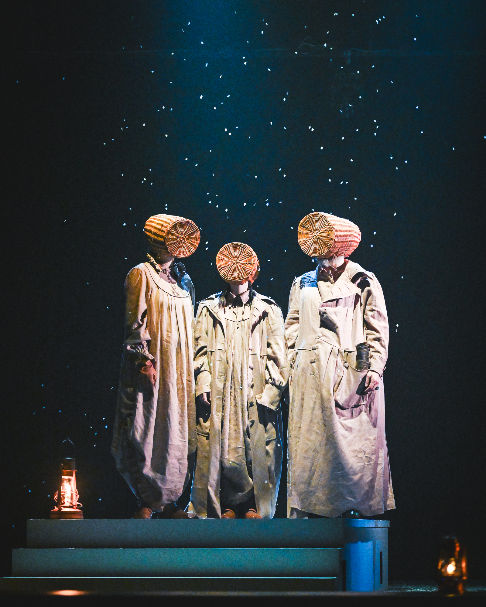 В глазах сына отец вырастает в грандиозную сакральную фигуру — но и «скукоживается» в полушута. Дом (тут говорят — «квартира»), который в начале спектакля подарил семье Грегор, — перевязанный ленточкой кубический павильон посреди сцены, — много раз поменяет конфигурацию, чтобы к финалу «разломиться» на части и оставить одну платформу, куда и встанут отец, мать, сестра, надев головные уборы брейгелевских «Пчеловодов». Из спектакля в спектакль у Гончарова переходит анахронистичный образ — мотоциклетный шлем: герои постоянно хотят укрыть голову, спрятаться от мира вокруг. Прячутся, хотя немного иначе, и в «Превращении» — и Грегор, и его семья. При этом в финале космическое одиночество (и, кстати, ограждённость от насекомых) становится новым сыновним подарком, заменой дома. «Сейчас пойдёт снег и будет играть Гендель», — говорит Грегор. И читает текст…