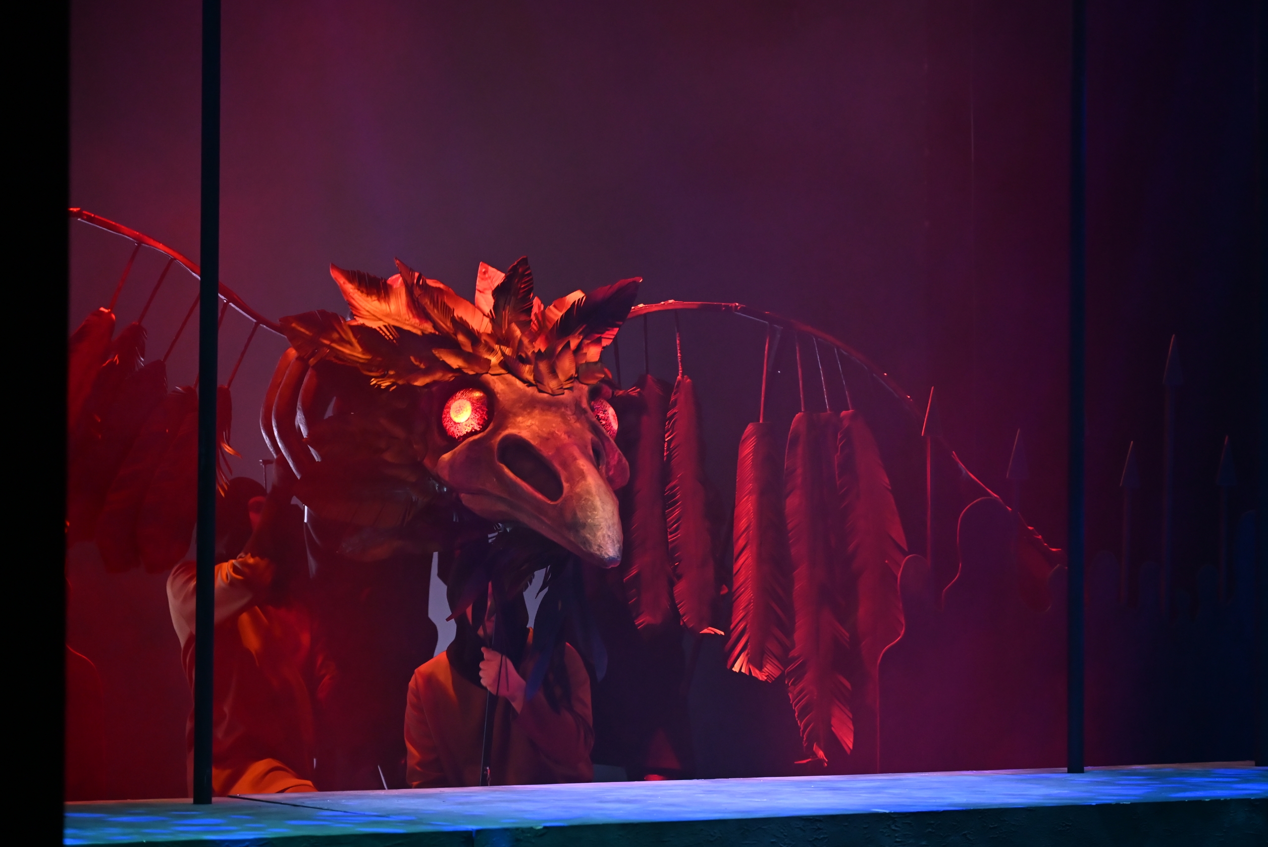 Несмотря на то, что основную часть действия составляет необычный для барнаульского театра текстово-пластический формат рэп-спектакля, в нём есть место и куклам: «рамку» или пролог истории создают паркетные куклы — современный взрослый и девочка-подросток, которые, в отличие от остальных героев, разговаривают прозой, — а во время «древнерусской» части позади участников появляется многометровая птица. За кукольную составляющую отвечали белорусский художник Никита Запаскин (он также работает над премьерой как сценограф) и режиссёр по куклам, главреж «Сказки» Дмитрий Шишанов.
