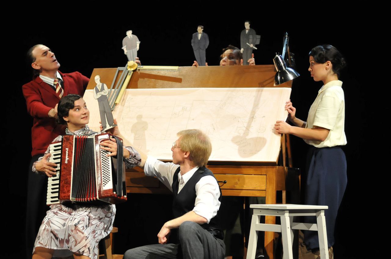 История художницы, занимавшейся созданием предметной среды и мебели, дизайном и архитектурой, заинтересовала Ксению Павлову — ученицу Руслана Кудашова, режиссёра театра кукол по образованию. Вместе с петербургской командой соавторов она создаёт в Новгороде спектакль на стыке форм и жанров: драматические сцены соединяются с театром предмета, активными участниками действия становятся плоские куклы, а изобретения Перриан материализуются на сцене в виде реальных объектов, которые создавались специально для премьеры.
