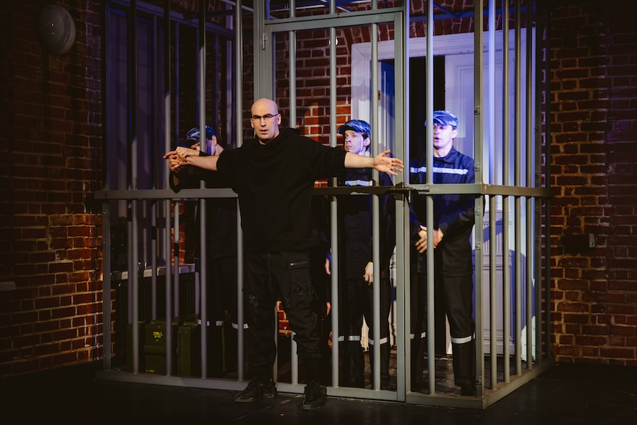 Подростки выходят из клеток и садятся за расположенный в середине сценического пространства стол, оказываясь лицом к лицу с режиссером. Они рассказывают ему о своей жизни: кто доверительно, кто настороженно, кто – красуясь и хвастаясь талантом воровать, как это делает Мишаня – с 12 лет бродяжничающий и уже в 14 севший в колонию (Станислав Кардашев из Театра имени Маяковского). Их монологи включают только то, что нужно и что можно. Это очевидно. Никто из них не скажет о своей вине. Ждать этого зрителям не стоит. Как не стоит ждать признаний в том, как плохо им живется в колонии. Прежде, чем попасть к режиссеру, все записанные интервью проходили через проверяющих УФСИН. Разве что каким-то чудом прошла мимо них история вышедшего на свободу Макса (Константин Бобков). Крестьянкин дает услышать зрителям душераздирающие крики парня, попавшего в опалу местных «авторитетов» – из состава таких же, как он, несовершеннолетних преступников. Его крики старательно заглушает тот же праздничный концерт грустных девушек в кокошниках.
