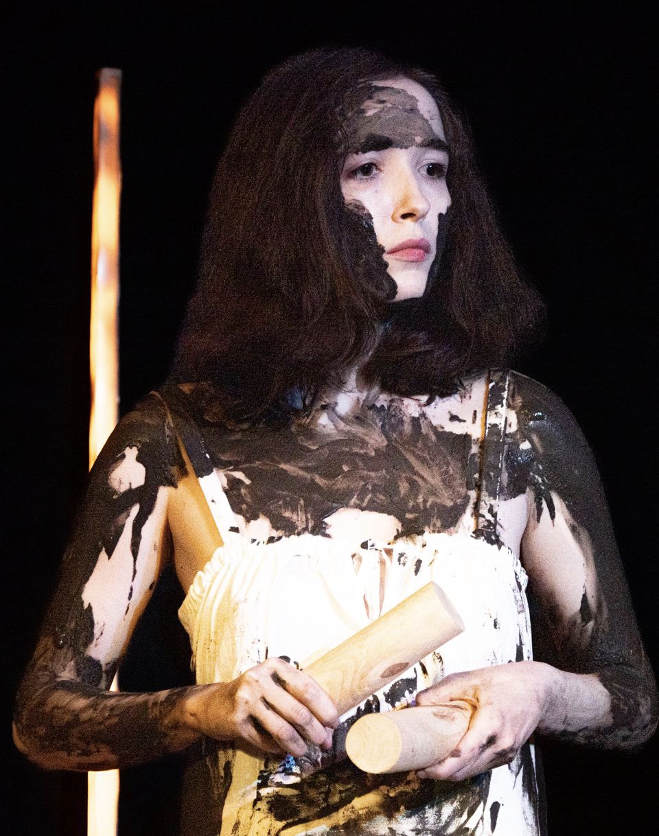 Важной составляющей «Торфа» становится предметная среда: создатели подробно рассказывают о происхождении, истории, аутентичности использованных предметов (Ксения Зорина, которая работает над премьерой и как сценограф, — историк и этнограф по первому образованию). Например, среди «участников» спектакля указаны нижегородские дрова, они же музыкальные инструменты, новгородская глина, чугунок из Пензы, палки из Тимирязевского леса, корзина художницы Елены Герчук и корзина художника Александра Петлюры, латунь от художницы Алёны Романовой.